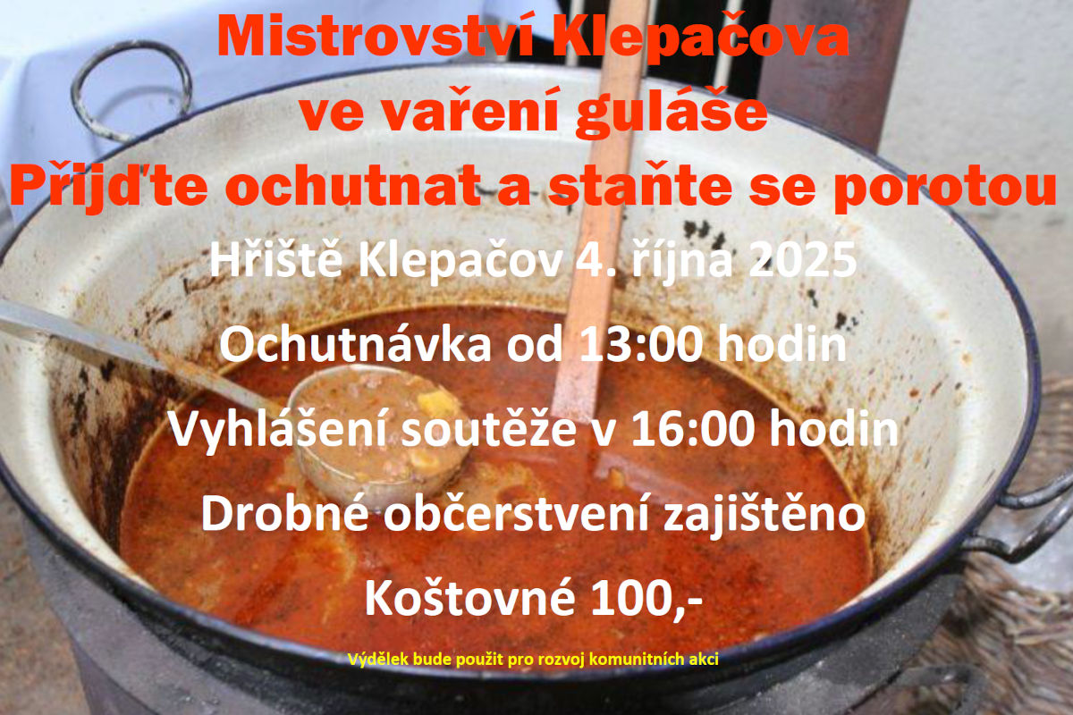 Upozorňujeme, že z důvodu výměny umělého povrchu bude od pátku 10. října 2025 uzavřeno víceúčelové hřiště na Klepačově. Zákaz vstupu na sportoviště potrvá do 22. listopadu 2025.