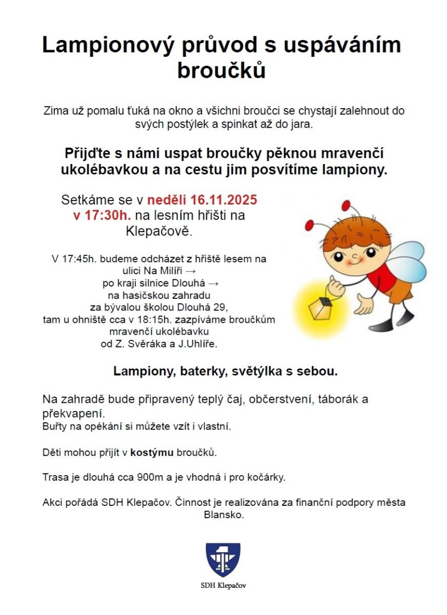 Přijďte s námi uspat broučky pěknou mravenčí ukolébavkou od Uhlíře a Svěráka a na cestu jim posvítíme lampiony.